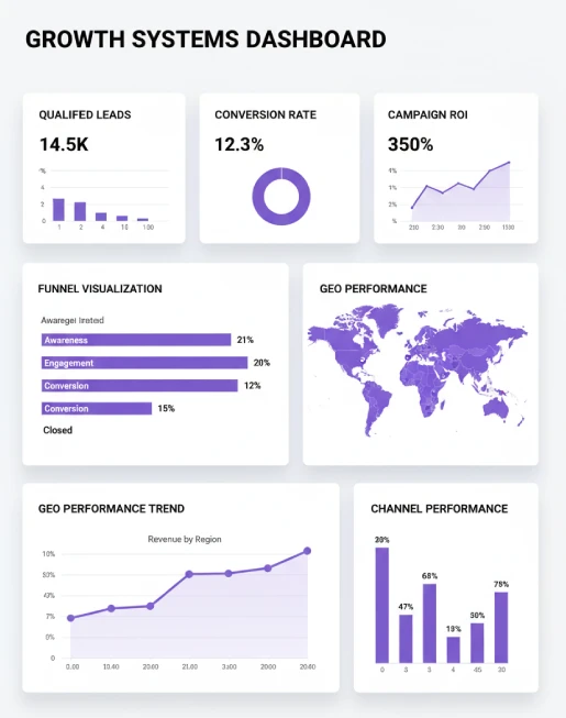 Fuel acquisition with AI-driven targeting, conversion-first websites, and RevOps dashboards that prove ROI.